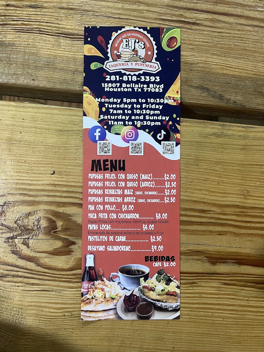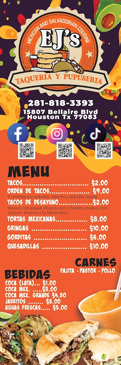 Whether you're in the mood for something light and refreshing or a heartier, more indulgent dish, Ejs Taqueria Y Pupuseria Menu provides a variety of options that will satisfy every palate. Each dish is carefully prepared, bursting with authentic flavors that transport diners straight to the heart of Latin America.
